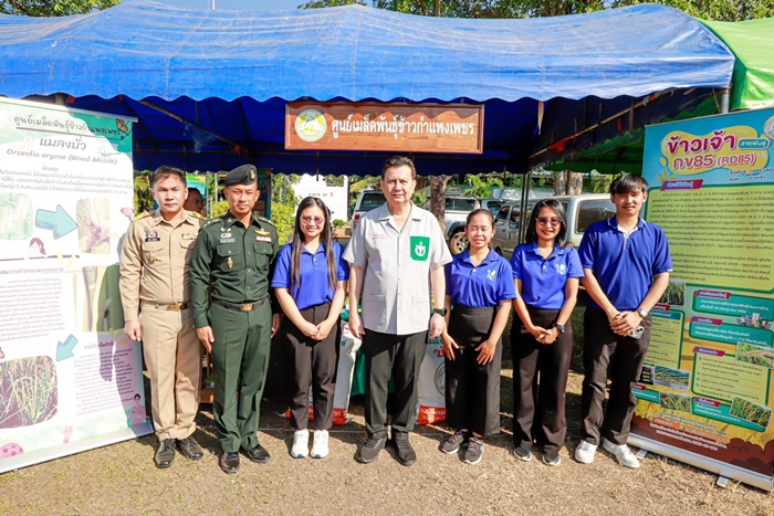 เมื่อวันที่ 15 มกราคม 2568 นายสันติ ไชยา ผู้อำนวยการศูนย์เมล็ดพันธุ์ข้าวกำแพงเพชร มอบหมายให้ นางสาวสาวิตรี ลอยถาวร นักวิชาการเกษตรปฏิบัติการ พร้อมด้วยเจ้าหน้าที่กลุ่มถ่ายทอดวิทยาการผลิตเมล็ดพันธุ์ดี ร่วมออกหน่วยบริการชาวนาเคลื่อนที่ภายใต้โครงการ “บำบัดทุกข์ บำรุงสุข สร้างรอยยิ้มให้ประชาชน“ เพื่อให้บริการช่วยเหลือประชาชนด้านการผลิตข้าว และป้องกันกำจัดโรค - แมลงศัตรูข้าว โดยมี นายชาธิป รุจนเสรี ผู้ว่าราชการจังหวัดกำแพงเพชรเป็นประธานในพิธี ณ โรงเรียนบ้านท่าขึ้น หมู่ 3 ตำบลโพธิ์ทอง อำเภอปางศิลาทอง จังหวัดกำแพงเพชร