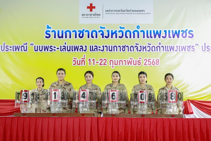 เมื่อวันที่ 22 กุมภาพันธ์ พ.ศ.2568 เวลา 21.00 น. ที่ลานกิจกรรมเวทีกาชาด บริเวณลานโพธิ์ งานประเพณีนบพระ-เล่นเพลง และงานกาชาดจังหวัดกำแพงเพชร ประจำปี 2568 นายชาธิป รุจนเสรี ผู้ว่าราชการจังหวัดกำแพงเพชร นำคณะผู้บริหาร ส่วนราชการ ร่วมดำเนินการออกรางวัลสลากกาชาดการกุศล ประจำปี 2568 ในงานประเพณีนบพระ-เล่นเพลง และงานกาชาดจังหวัดกำแพงเพชร ประจำปี 2568 โดยมี นางกาญจนี รุจนเสรี นายกเหล่ากาชาดจังหวัดกำแพงเพชร, นางสาวสุพัตรา คล้ายทิม, นายอนุชา พัสถาน รองผู้ว่าราชการจังหวัดกำแพงเพชร, นายกองเอกชัยพฤกติ์ เชียรธษนรักษ์ ปลัดจังหวัดกำแพงเพชร, หัวหน้าส่วนราชการ, คณะกรรการและสมาชิกเหล่ากาชาดจังหวัดกำแพงเพชร แขกผู้มีเกียรติ สื่อมวลชน และประชาชน เข้าร่วมกิจกรรมในวันและเวลาดังกล่าว