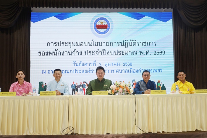 เมื่อวันที่ 7 ตุลาคม 2568 ณ อาคารอเนกประสงค์ชากังราว สำนักงานเทศบาลเมืองกำแพงเพชรนายวุฒิชัย ศุภอรรถพานิช นายกเทศมนตรีเมืองกำแพงเพชร เป็นประธานมอบนโยบายการปฏิบัติราชการแก่พนักงานจ้าง ประจำปีงบประมาณ พ.ศ. 2569 โดยมีคณะผู้บริหารเทศบาลเมืองกำแพงเพชร และปลัดเทศบาลเมืองกำแพงเพชร หัวหน้าส่วนราชการเข้าร่วมในพิธี นายกเทศมนตรีได้กล่าวว่า พนักงานจ้าง ถือเป็นกำลังสำคัญในการขับเคลื่อนและพัฒนาเมืองกำแพงเพชรในทุกด้าน การทำงานควรยึดหลัก “รวดเร็ว มีประสิทธิภาพ และสื่อสารชัดเจน”