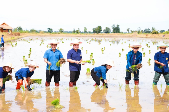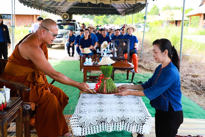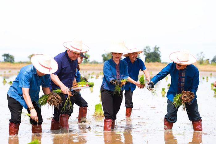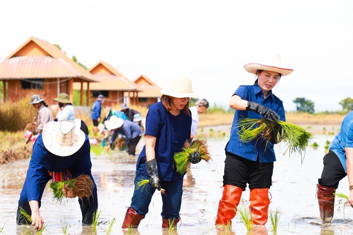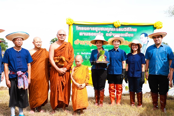วันที่ 7 ตุลาคม 2568 เวลา 09.39 น. น. ที่บริเวณแปลงนา วัดป่าไทรงาม นางสาวสุพัตรา คล้ายทิม รองผู้ว่าราชการจังหวัดกำแพงเพชร เป็นประธานนำส่วนราชการและพุทธศาสนิกชนร่วมดำนาบุญ ข้าวหอมมะลิแดง ตามโครงการชุมชนคุณธรรมวิถีไทย ตามรอยพ่ออย่างพอเพียง โดยมี พระครูโสภณวชิรกิจ (สง่า อุฏฺฐาโน) เจ้าอาวาสวัดป่าไทรงาม พร้อมด้วย นายนิกร พิลึกเรืองเดช นายอำเภอไทรงาม , นางปิ่นมณี พฤกษ์มหาชัยกุล ผู้บัญชาการเรือนจำกลางกำแพงเพชร , หัวหน้าส่วนราชระดับจังหวัดฯ , องค์กรปกครองส่วนท้องถิ่น พร้อมด้วยประชาชนในพื้นที่พร้อมใจร่วมกันดำนาบุญในครั้งนี้