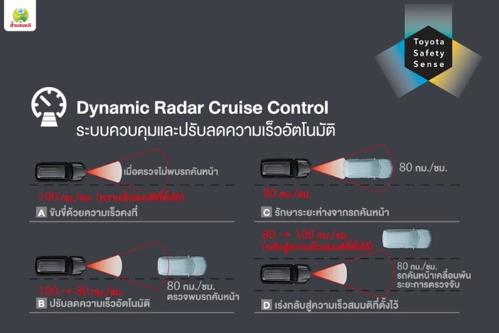 - สวิตซ์ควบคุมเครื่องเสียงบนพวงมาลัย - ระบบเชื่อมต่อไร้สาย Bluetooth - รองรับระบบ Apple CarPlay / Android Auto - ลำโพง 6 ตำแหน่ง - ระบบ T-Connect Telematics - ระบบเบรกป้องกันล้อล็อค ABS - ระบบกระจายแรงเบรก EBD - ระบบเสริมแรงเบรก BA - ระบบควบคุมการทรงตัว VSC - ระบบป้องกันการลื่นไถล TRC - ระบบช่วยออกตัวบนทางลาดชัน HAC - ระบบควบคุมส่วนพ่วงท้าย TSC - ระบบแจ้งเตือนก่อนการชนด้านหน้า (Forward Collision Warning) - ระบบช่วยเตือนเมื่อรถคันหน้าเคลื่อนตัว (Traffic Movement Notification) - ถุงลมนิรภัย 7 ตำแหน่ง - คู่หน้า 2 ตำแหน่ง - ด้านข้าง 2 ตำแหน่ง - ม่านนิรภัย 2 ตำแหน่ง - หัวเข่าคนขับ 1 ตำแหน่ง - กล้องมองภาพขณะถอยจอด - สัญญาณกะระยะช่วยจอดด้านหลัง 6 ตำแหน่ง - กุญแจรีโมท - ระบบกุญแจ Immobilizer LEADER 2.4 G 2WD AT สิ่งที่ได้เพิ่มจากรุ่น LEADER 2.4 S 2WD +161,000 บาท มีดังนี้ - ล้ออัลลอย ขนาด 18 นิ้ว พร้อมยาง 265/60 R18 - ยางอะไหล่แบบ Full Size - มือเปิดประตู แบบโครเมียม - ราวหลังคา - บันไดข้าง สีเงิน - เบาะนั่งหุ้มด้วยหนัง สีดำ - เบาะนั่งคู่หน้า ปรับด้วยไฟฟ้า 6 ทิศทาง - ช่องแอร์ ตกแต่งด้วยแถบสีเงิน และ โครเมียม - แผงควบคุมกระจกหน้าต่าง ตกแต่งด้วยสีดำเมทัลลิค - วัสดุตกแต่งภายในห้องโดยสาร ลายไม้ พร้อมแถบสีเงิน - แผงประตู หุ้มด้วยหนัง - ช่องเก็บของด้านบน แบบรักษาความเย็น Cool Box - พวงมาลัยหุ้มด้วยหนัง - หัวเกียร์ เบรกมือ หุ้มด้วยหนัง - แป้นเปลี่ยนเกียร์ที่พวงมาลัย Paddle Shift - ปุ่มสตาร์ทเครื่องยนต์ Push Start Button - ระบบกุญแจ Smart Keyless Entry - กระจกหน้าต่างไฟฟ้า 4 บาน พร้อมระบบ One-Touch - ระบบเตือนมุมอับสายตาที่กระจกมองข้าง Blind Spot Monitor - ระบบเตือนเมื่อมีรถตัดผ่านขณะถอหลัง Rear Cross Traffic Alert - ระบบเตือนแรงดันลมยาง TPMS - ระบบสัญญาณกันขโมย - สัญญาณกะระยะช่วยจอดด้านหน้า - สัญญาณกะระยะช่วยจอดด้านหลัง LEADER 2.4 G Plus 2WD AT สิ่งที่ได้เพิ่มจากรุ่น LEADER 2.4 G 2WD +39,000 บาท มีดังนี้