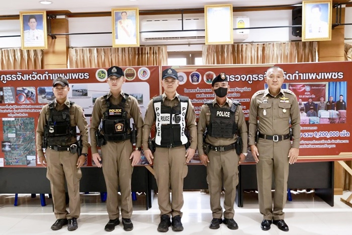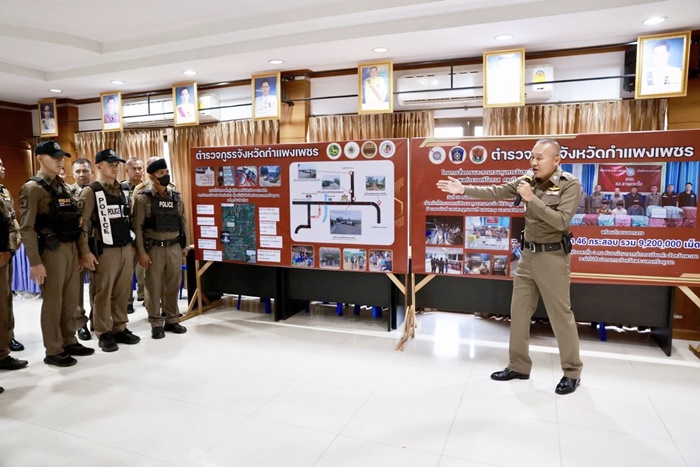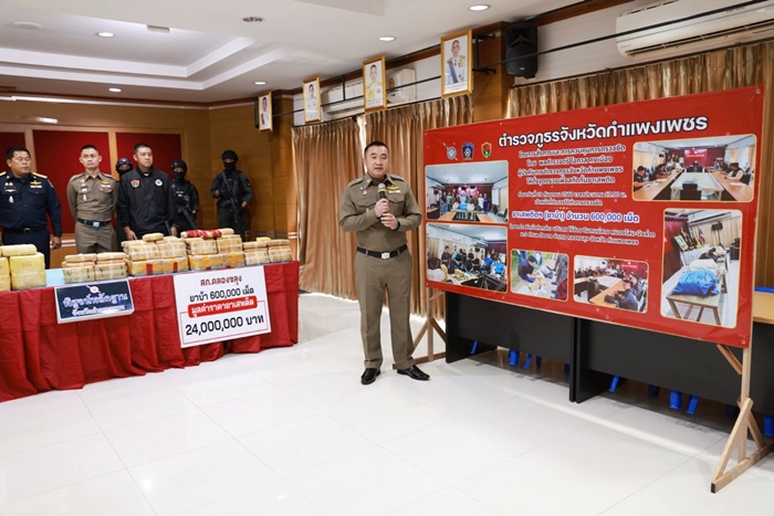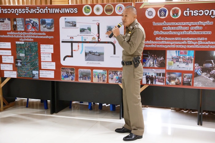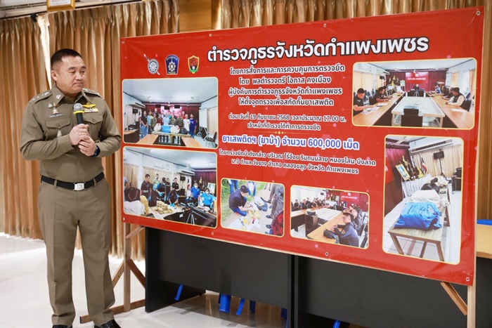 วันที่ 9 ตุลาคม 2568 เวลา 11.00 น. ที่ห้องประชุมกำแพงลีลา ตำรวจภูธรจังหวัดกำแพงเพชร นายชาธิป รุจนเสรี ผู้ว่าราชการจังหวัดกำแพงเพชร ร่วมแถลงข่าว การจับกุมยาเสพติดรายใหญ่ 2 คดี โดยมีพล.ต.ท.กิติศักดิ์ ดุรงควิบูลย์ ผู้บัญชาการตำรวจภูธรภาค 6, พล.ต.ต.โอภาส คงเมือง ผู้บังคับการตำรวจภูธรจังหวัดกำแพงเพชร, พ.อ.พงศธร เมืองแก่น รองผู้อำนวยการรักษาความมั่นคงภายในจังหวัดกำแพงเพชร, นายอำเภอคลองขลุง, นายอำเภอลานกระบือ, ศูนย์อำนวยการป้องกันและปราบปรามยาเสพติดจังหวัดกำแพงเพชร, สถานีตำรวจภูธรลานกระบือ, สถานีตำรวจภูธรคลองขลุง, ส่วนราชการ, เจ้าหน้าที่ และหน่วยงานที่เกี่ยวข้องร่วมรับฟังการแถลงข่าวดังกล่าว