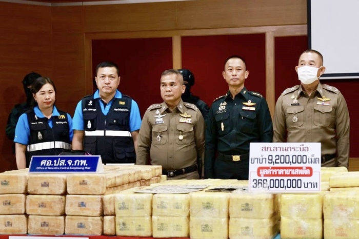 โดยเมื่อวันที่ 28 กันยายน 2568 เวลาประมาณ 00.30 น. ขณะที่ เจ้าหน้าที่ตำรวจสายตรวจ สภ.ลานกระบือ (ชุดจับกุม) ออกตรวจในเขตพื้นที่รับผิดชอบ เมื่อมาถึงบริเวณที่เกิดเหตุ ได้พบรถยนต์กระบะ ยี่ห้อ อีซูซุ สีเทา ติดแผ่นป้ายทะเบียนด้านหน้า แต่ไม่ติดแผ่นป้ายทะเบียนด้านหลัง มีพฤติการณ์ น่าสงสัย จึงได้เรียกให้หยุด แต่ผู้ขับขี่รถยนต์กระบะคันดังกล่าวไม่ยอมหยุดรถ เจ้าหน้าที่ตำรวจชุดจับกุม จึงได้ ติดตามและสามารถหยุดรถยนต์กระบะคันดังกล่าวไว้ได้ โดยในรถยนต์มีวิทยุสื่อสาร จำนวน 1 เครื่อง และยาบ้าบรรจุอยู่ในกระสอบ จำนวน 46 กระสอบ มียาบ้า รวม 9,200,000 เม็ด สอบถาม ผู้ต้องหาที่ 1,2,3ให้การรับสารภาพว่ายาเสพติดทั้งหมดเป็นของตนจริง โดยจะนำยาเสพติดดังกล่าวไปส่งให้ผู้ซื้อในเขต พื้นที่ชั้นใน เจ้าหน้าที่ตำรวจชุดจับกุมจึงได้ทำการ แจ้งสิทธิ แจ้งข้อกล่าวหา ต่อ ผู้ต้องหาที่ 1,2,3 พร้อม นำตัวผู้ต้องหาทั้งสามคน และของกลาง ส่งพนักงานสอบสวนดำเนินคดีตามกฎหมาย และจะได้ทำการสืบสวน สอบสวนขยายผล นำตัวผู้กระทำความผิดที่เกี่ยวข้องมาดำเนินคดีตามกฎหมายต่อไป