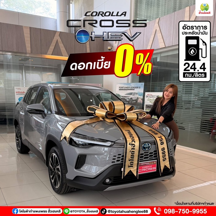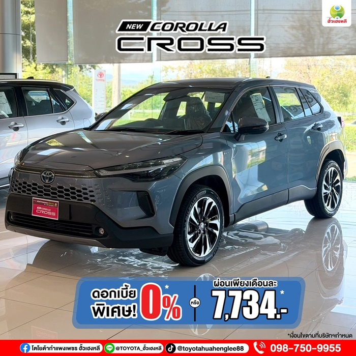 โตโยต้ากำแพงเพชร ฮั้วเฮงหลี มีรถพร้อมส่งมอบ !! เปิดประสบการณ์ขับขี่ที่หรูหรา และทรงพลังอย่างลงตัว ด้วยระบบ Hybrid เจเนอเรชันใหม่ ที่มอบทั้งความแรงและความประหยัดในทุกเส้นทาง COROLLA CROSS ต่อที่ 1 ดอกเบี้ยพิเศษ 0% หรือ ผ่อนเริ่มต้น 7,734 บาทต่อเดือน ต่อที่ 2 ฟรี ประกันภัยชั้น 1