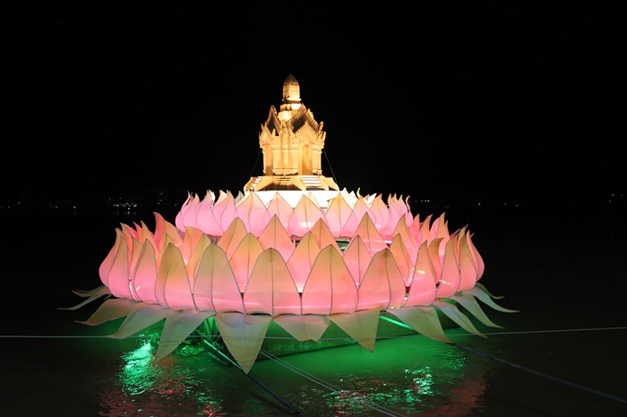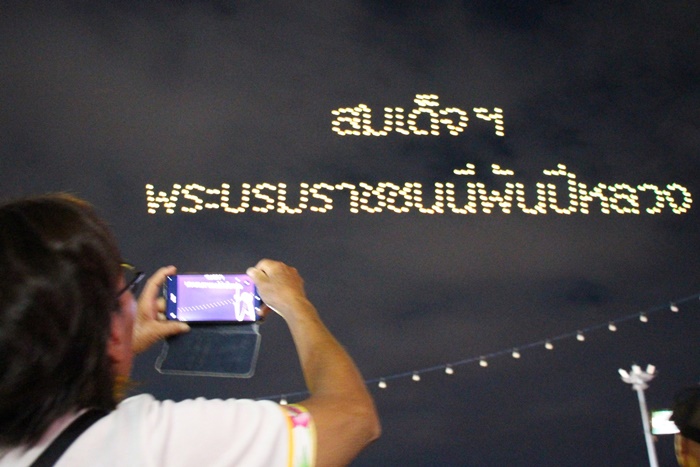 พร้อมชมการแสดงโดรนแปรอักษรน้อมรำลึกในพระมหากรุณาธิคุณ สมเด็จพระนางเจ้าสิริกิติ์ พระบรมราชินีนาถ พระบรมราชชนนีพันปีหลวง โดยมีชุดแสดงการแปลอักษรดังนี้ 1. ตราพระนามาภิไธยย่อ ส.ก. (2D) 2. สมเด็จพระนางเจ้าสิริกิติ์ พระบรมราชินีนาถ พระบรมราชชนนีพันปีหลวง (2D) 3. อักษรคำว่า เสด็จสู่สวรรคาลัย สมเด็จฯ พระบรมราชชนนีพันปีหลวง "สถิตอยู่ในใจตราบนิรันตร์" 4. พระบรมสาทิสลักษณ์ พระบาทสมเด็จพระบรมชนกาธิเบศร มหาภูมิพลอดุลยเดชมหาราช บรมนาถบพิตร และ สมเด็จพระนางเจ้าสิริกิติ์ พระบรมราชินีนาถ พระบรมราชชนนีพันปีหลวง 5. ภาพวัดพระบรมธาตุนครชุม 6. ภาพศาลหลักเมืองกำแพงเพชร 7. ภาพวัดพระสี่อิริยาบท 8. ภาพน้ำตกคลองลาน 9. ภูเขาโมโกจู 10. ปักหมุด @ กำแพงเพชร 11. ธงชาติไทย 12. ภาพ By Amazing Thailand 13. ข้อความ ลอยกระทง 68 กำแพงเพชร