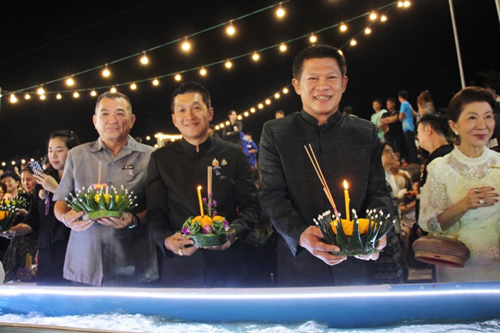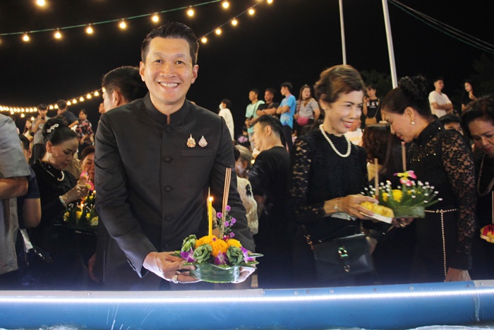 จากนั้นนายไผ่ ลิกค์ สมาชิกสภาผู้แทนราษฎรจังหวัดกำแพงเพชร เขต 1 นายชาธิป รุจนเสรี ผู้ว่าราชการจังหวัดกำแพงเพชร นายวุฒิชัย ศุภอรรถพานิช นายกเทศมนตรีเมืองกำแพงเพชร และนายอภินันท์ มุสิกะพงษ์ วัฒนธรรมจังหวัดกำแพงเพชร ร่วมกันประกอบพิธีจองเปรียง โดยการจุดเทียนในโคมแล้วชักขึ้นไปบนยอดเสา เป็นอันเสร็จพิธี จากนั้นแขกผู้มีเกียรติ ได้ร่วมกันเดินทางไปยังแพท่าน้ำเพื่อร่วมกันลอยกระทงตามประเพณีที่สืบกันมา