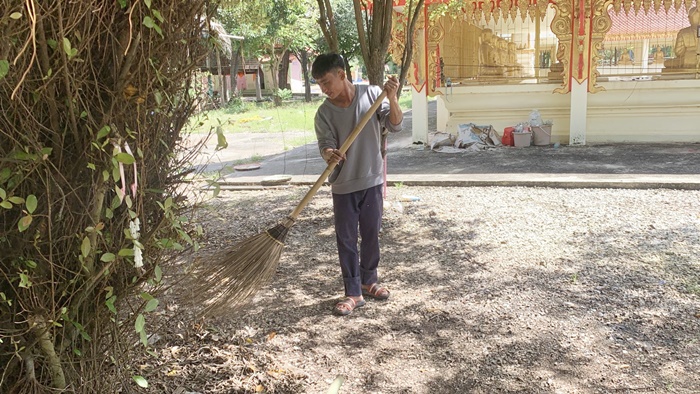 ขณะที่ “พระอธิการปรัชญา จารุธัมโม” เจ้าอาวาสวัดฯ ได้เล่าใหัฟังว่า “พี่ชายของนายทศพร (พ่อเด็ก) ได้มาบวชเป็นพระลูกวัดของอาตมา ซึ่งก็ทราบว่านายทศพรตกงาน และเมียเพิ่งทิ้งไปหลังคลอดลูกจึงได้นำมาหาพระพี่ชายที่วัด ตนรู้สึกเมตตาสงสารจึงได้ให้ที่พักชั่วคราวและอาหารที่บินฑบาตรกับพ่อเด็ก และปัจจัยเล็กน้อยให้ซื้อนมให้ลูกกิน พร้อมตั้งชื่อว่า “น้องใบบุญ” ซึ่งญาติโยมที่มาทำบุญที่วัดก็สงสารจึงได้นำนมผงและผ้าอ้อมมามอบให้ อาตมาในฐานะพระสงฆ์ก็ช่วยได้ตามมีตามเกิดเท่านั้น หากนายทศพรมีงานทำแล้ว จะขยับขยายที่อยู่พาลูกไปดูแลเองตนก็เต็มใจ สำหรับใครอยากช่วยเหลือ 2 พ่อลูกก็สามารถมาได้ที่วัดท่าตะคร้อเขาทอง ม.5 ต.เทพนคร อ.เมือง จ.กำแพงเพชร หรือโทร.098-6499524
