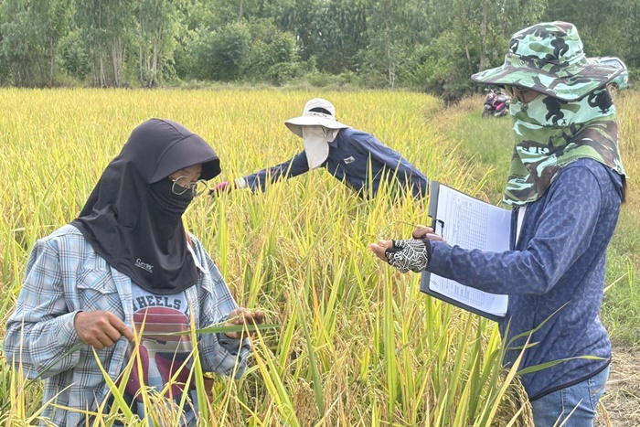 วันที่ 17 พฤศจิกายน 2568 นาย อัครสิชฌ์ มหาจิราศิริ ผู้อำนวยการศูนย์เมล็ดพันธุ์ข้าวพิษณุโลก รักษาการในตำแหน่งผู้อำนวยการศูนย์เมล็ดพันธุ์ข้าวกำแพงเพชร มอบหมายให้ นางสาวกัญจนา ตรีหนู นักวิชาการเกษตรปฏิบัติการ นางสาวสุชีรา สงพูล ตรวจตัดสินแปลงผลิตเมล็ดพันธุ์ข้าว กข 111 ชั้นพันธุ์จำหน่าย อย่างเป็นทางการ จำนวน 4ราย 120ไร่ ณ กลุ่มผู้ผลิตเมล็ดพันธุ์ข้าวบ้านนาถัง ต. ถ้ำกระต่ายทอง อ.พรานกระต่าย กลุ่มผู้ผลิตเมล็ดพันธุ์ข้าวบ้านสระแก้ว ต.ธำมรงค์ อ.เมือง จ.กำแพงเพชร