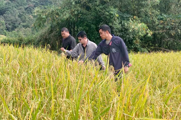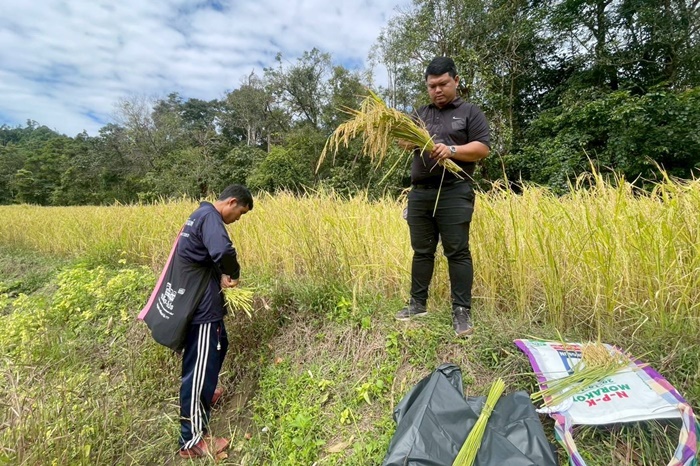 วันที่ 19-21 พฤศจิกายน 2568 นายอัครสิชฌ์ มหาจิราศิริ ผู้อำนวยการศูนย์เมล็ดพันธุ์ข้าวพิษณุโลก รักษาการในตำแหน่งผู้อำนวยการศูนย์เมล็ดพันธุ์ข้าวกำแพงเพชร มอบหมายให้ นายสาด ทุกทิวา นักวิชาการส่งเสริมการเกษตรปฏิบัติการ พร้อมด้วยผู้ช่วยปฏิบัติงานโครงการพระราชดำริ ลงพื้นที่ติดตามให้คำแนะนำวิชาการด้านข้าวให้กับเกษตรกรหลังการเก็บเกี่ยว พร้อมเก็บเกี่ยวผลผลิตข้าวพันธุ์พื้นเมือง เพื่อนำตัวอย่างไปศึกษาลักษณะพันธุ์ และเก็บไว้ใช้เพาะปลูกในฤดูถัดไป ในเขตพื้นที่โครงการจัดตั้งหมู่บ้านยามชายเเดนอันเนื่องมาจากพระราชดำริ บ้านมะโอะโคะ ณ หมู่ที่ 12 ตำบลเเม่จัน อำเภออุ้มผาง จังหวัดตาก