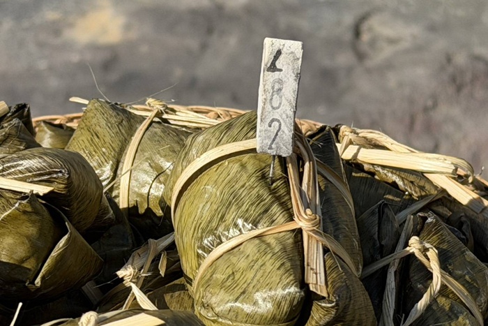 “พระครูไพโรจน์วชิรากร เจ้าอาวาสวัดหนองกระทุ่มใหม่ และ พระอาจารย์วิเชียร เจ้าอาวาสวัดป่าปากโดม จังหวัดอุบลราชธานี“ พร้อมพระสงฆ์จำนวน 9 รูป สวดเจริญพระพุทธมนต์ก่อนจะทำพิธีจุดเทียนชัยและเบิกเนตรองค์พญานาคทั้ง 2 จากนั้นชาวบ้านได้ร่วมกันตีระฆังเพื่อเรียกทรัพย์จากองค์พญานาคให้รับรู้ พร้อมกับมีนางรำรำถวายหน้าพิธี ซึ่งระหว่างนั้นก็มีผู้เข้าร่วมพิธีมีอาการแปลกเหมือนถูกบางอย่างเข้าสิงร่าง ซึ่งก็เชื่อว่าน่าจะเป็นการรับรู้ขององค์พญานาคในพิธีดังกล่าว จากนั้นประธานในพิธีเจ้าภาพสร้างพญานาคได้ทำการจุดธูปเสี่ยงทายปักไว้ที่โตกข้าวต้มมัดได้เป็นตัวเลข “482, 782” เพื่อให้ชาวบ้านได้นำไปเสี่ยงดวงในโค้งสุดท้ายก่อนออกผลรางวัลสลากกินแบ่งรัฐบาล