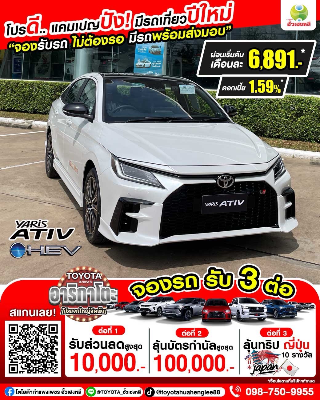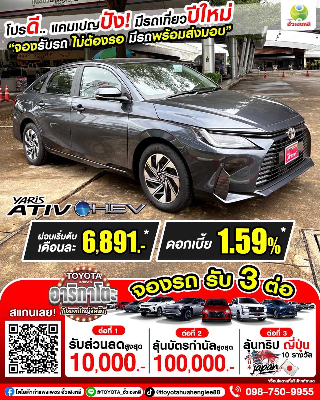 Yaris ATIV HEV • ผ่อนเดือนละ 6,891.- • ดอกเบี้ย 1.59%