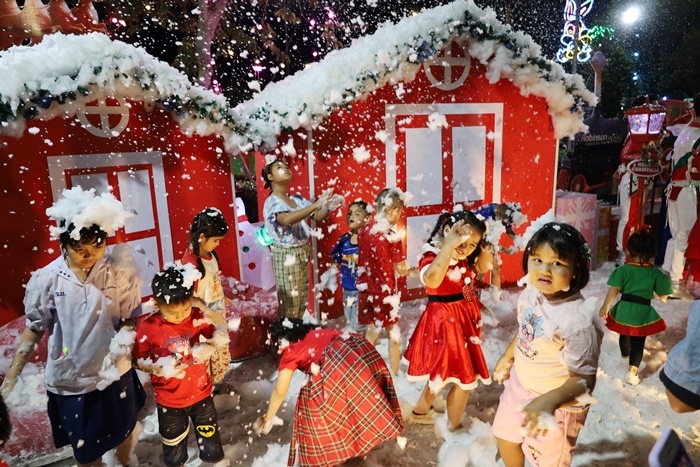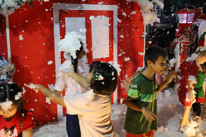 โดยเฉพาะบรรมดาเด็กต่างยืนรอเวลาช่วงที่พ่นหิมะลงมาต่างพากันเอามือไปรอง กระโดดโลดเต้น พร้อมถ่ายรูปเซลฟี่ เป็นที่ระลึกทั้งภาพหิมะและซุ้มประดับและโคมไฟต่างๆ ในค่ำคืนแห่งความสุขในครั้งนี้ร่วมกับบรรดาเด็กๆด้วย นอกจากนี้บนเวทียังพบกับการแสดงต่างๆให้ได่ชมพร้อมกับการนั่งรับประทานอาหารในสไตล์แคมป์ปิ้ง อีกด้วย