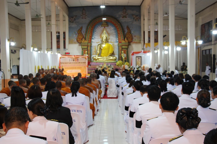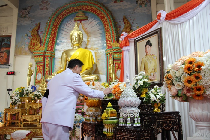 จากนั้นประกอบพิธีถวายความเคารพ วางแจกันดอกไม้สด และเปิดกรวยกระทงดอกไม้เบื้องหน้าพระรูปสมเด็จพระเจ้าลูกเธอ เจ้าฟ้าสิริวัณณวรี นารีรัตนราชกัญญา เพื่อเป็นการแสดงความเคารพอย่างสูงสุด ต่อด้วยพิธีเจริญพระพุทธมนต์โดยพระสงฆ์ 10 รูป และการถวายเครื่องไทยธรรมเพื่อความเป็นสิริมงคล ก่อนจะร่วมกันทำบุญตักบาตรข้าวสารอาหารแห้งบริเวณริมถนนหน้าอาคาร