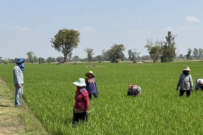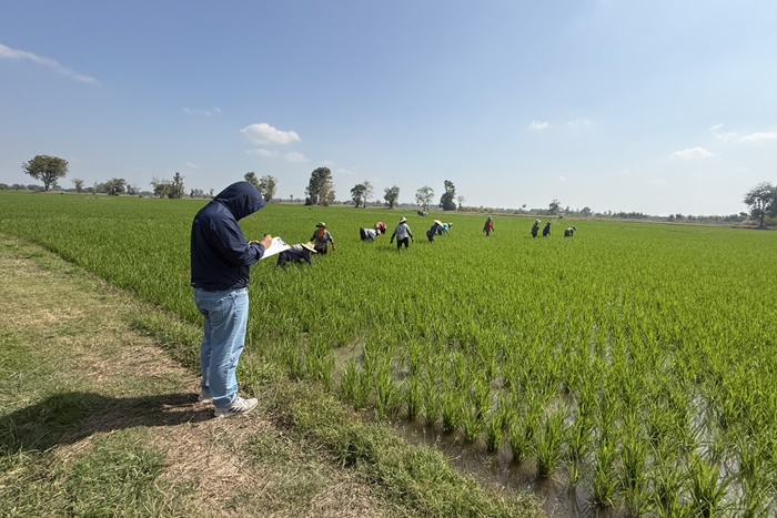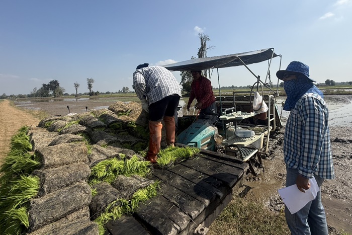 วันที่ 7 มกราคม 2569 นายอัครสิชฌ์ มหาจิราศิริ ผู้อำนวยการศูนย์เมล็ดพันธุ์ข้าวพิษณุโลก รักษาการในตำแหน่งผู้อำนวยการศูนย์เมล็ดพันธุ์ข้าวกำแพงเพชร มอบหมายให้ นายอำนาจ เขียวยิ่ง นักวิชาการเกษตร และนายนัฎปกรณ์ สุกโจม นักวิเคราะห์นโยบายและแผน เข้าติดตามแปลงขยายพันธุ์ข้าว กข 85 ชั้นพันธุ์จำหน่าย ฤดูแล้ง ปี 2569 จากการลงพื้นที่ติดตามพบว่า กล้าที่ปักดำมีความสมบูรณ์และแข็งแรงดี ไม่พบการระบาดของโรคและแมลงศัตรูข้าว ณ กลุ่มผู้ผลิตเมล็ดพันธุ์ข้าวบ้านทุ่งรวงทอง ต.เขาคีริส อ.พรานกระต่าย จ.กำแพงเพชร