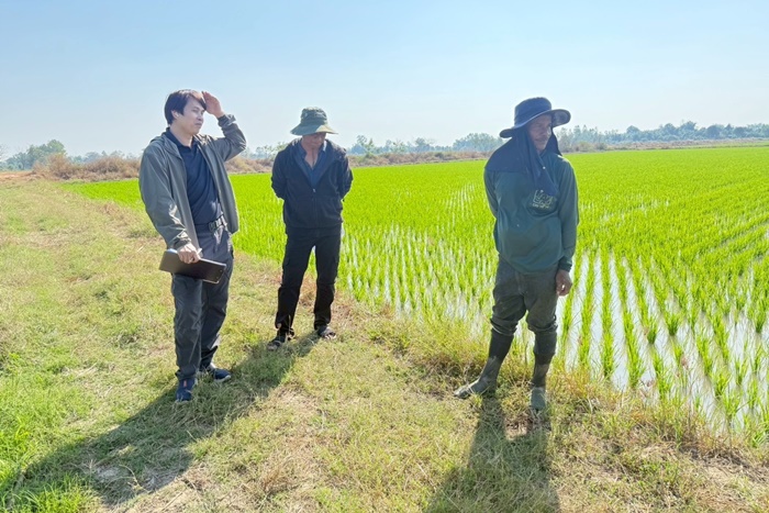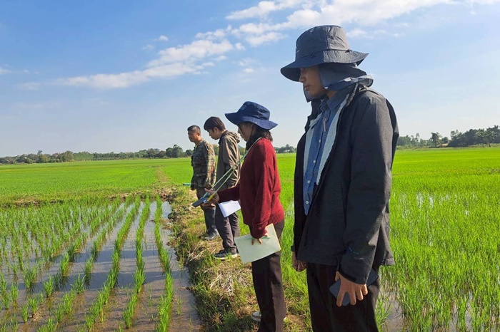 วันที่ 29 ธันวาคม 2568 นายอัครสิชฌ์ มหาจิราศิริ ผู้อำนวยการศูนย์เมล็ดพันธุ์ข้าวพิษณุโลก รักษาการในตำแหน่งผู้อำนวยการศูนย์เมล็ดพันธุ์ข้าวกำแพงเพชร มอบหมายให้นายสิทธิ เดชวิลัย นักวิชาการเกษตรปฏิบัติการ และเจ้าหน้าที่ศูนย์เมล็ดพันธุ์ข้าวกำแพงเพชร เข้าติดตามแปลงขยายพันธุ์ข้าว กข 85 ชั้นพันธุ์จำหน่าย ฤดูแล้ง ปี 2569 จากการลงพื้นที่ติดตามพบว่า กล้าที่ปักดำมีความสมบูรณ์และแข็งแรงดี การเจริญเติบโตของต้นกล้าค่อนข้างโตช้า เนื่องจากสภาพอากาศหนาวเย็น ไม่พบการระบาดของโรคและแมลงศัตรูข้าว ณ กลุ่มผู้ผลิตเมล็ดพันธุ์ข้าวบ้านคลองน้ำไหล ตำบลคลองนํ้าไหล อำเภอคลองลาน และกลุ่มผู้ผลิตเมล็ดพันธุ์ข้าวบ้านตะเคียนงาม ตำบลโพธิ์ทอง อำเภอปางศิลาทอง จังหวัดกำแพงเพชร