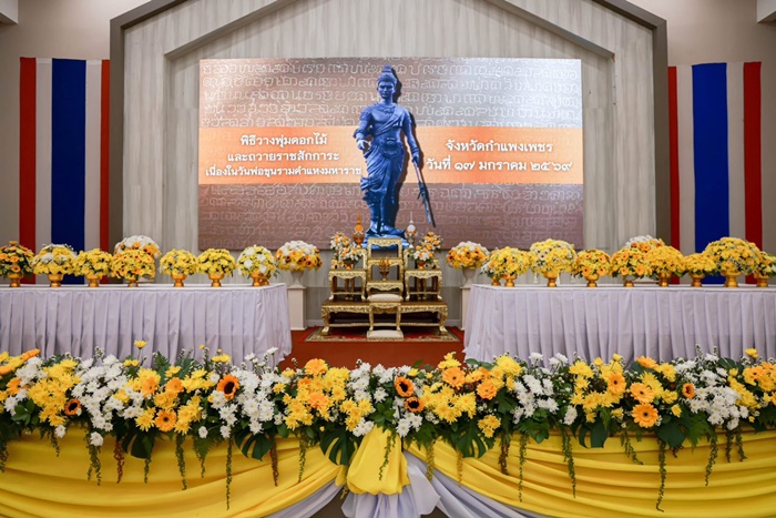 จากนั้นจุดเครื่องทองน้อย เบื้องหน้าพระบรมสาธิตลักษณ์ พ่อขุนรามคำแหงมหาราช และกล่าวถวายราชสดุดีเบื้องหน้าพระบรมสาธิตลักษณ์ พ่อขุนรามคำแหงมหาราช เพื่อรำลึกถึงพระมหากรุณาธิคุณที่ทรงสร้างสรรค์มรดกทางศิลปะและวัฒนธรรมสำคัญของชาติไว้ทรงคิดประดิษฐ์อักษรไทยเมื่อปี พ.ศ.1826 อันเป็นต้นกำเนิดของอักษรไทยที่ใช้กันทุกวันนี้ ณ หอประชุมใหญ่ ศาลากลางจังหวัดกำแพงเพชร