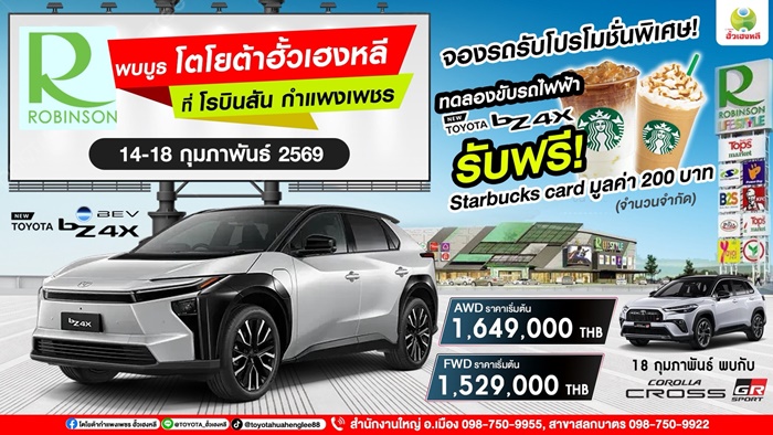 14–18 กุมภาพันธ์ 2569 นี้ เท่านั้น! ทดลองขับรถไฟฟ้า TOYOTA bZ4X ฟรี! รับฟรี! บัตรกำนัล starbucks card มูลค่า 200 บาท (จำนวนจำกัด) จองภายในงาน รับดีลสุดคุ้ม ที่ปรึกษาคอยดูแลทุกขั้นตอน อนุมัติง่าย ผ่อนสบาย NEW bZ4X – MOTION OF TRUST ให้ความเชื่อมั่น ขับเคลื่อนชีวิตให้เหนือกว่า BZ4X Long Range FWD 1,529,000 บาท BZ4X Long Range AWD 1,649,000 บาท