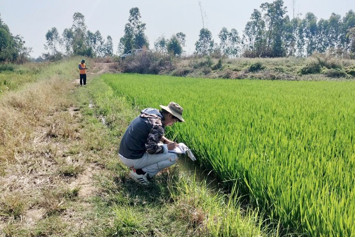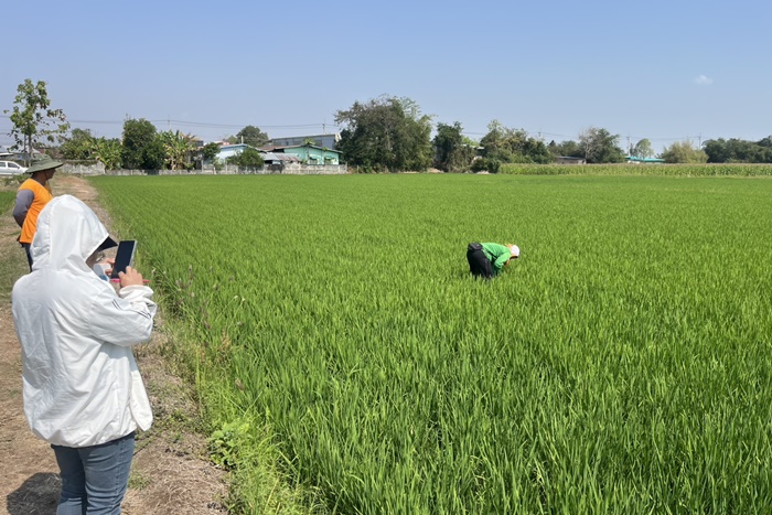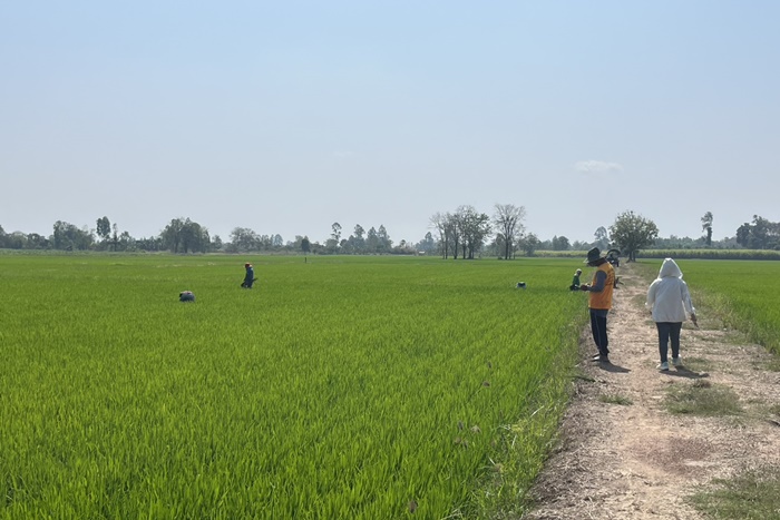วันที่ 10 กุมภาพันธ์ 2569 นายสันติ ไชยา ผู้อำนวยการศูนย์เมล็ดพันธุ์ข้าวกำแพงเพชร มอบหมายให้ นางสาวเกศิณี แก้วมาลา นักวิชาการเกษตรชำนาญการ และนายวิวัฒน์ แก้วมราช นักเกษตร ติดตามแปลงผลิตเมล็ดพันธุ์ข้าว กข 85 ชั้นพันธุ์จำหน่าย ฤดูแล้ง ปี 2569 กลุ่มผู้ผลิตเมล็ดพันธุ์ข้าวบ้านตะเคียนงาม จำนวน 240 ไร่ 11 ราย ในระยะแตกกอ พบโรคใบจุดสีน้ำตาล แจ้งเกษตรกรเฝ้าระวัง ณ ต.โพธิ์ทอง อ.ปางศิลาทอง จ.กำแพงเพชร