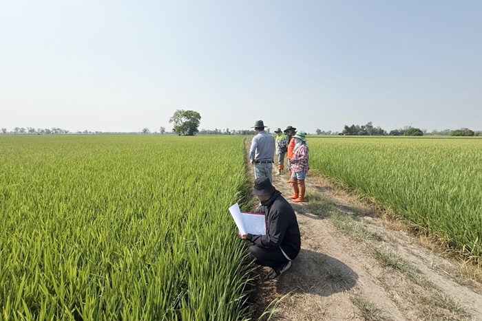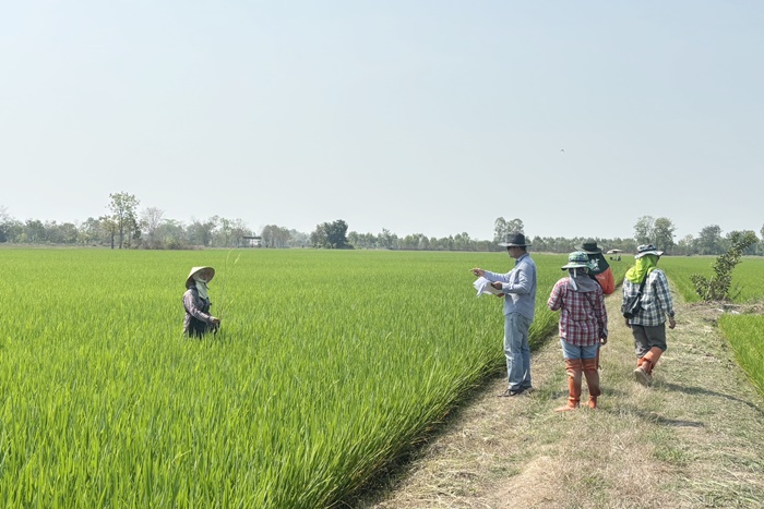 วันที่ 18 กุมภาพันธ์ 2569 นายสันติ ไชยา ผู้อำนวยการศูนย์เมล็ดพันธุ์ข้าวกำแพงเพชร มอบหมายให้ นายอำนาจ เขียวยิ่ง นักวิชาการเกษตร และนายณัฐวุฒิ อนุสนธิ์ ผู้ช่วยปฏิบัติงานแปลงผลิตเมล็ดพันธุ์ เข้าติดตามแปลงขยายพันธุ์ กข79 ชั้นพันธุ์จำหน่าย ฤดูแล้ง ปี2569 หลังจากการติดตามแปลง พบว่าข้าวมีความสมบูรณ์ดี ต้นข้าวแข็งแรง มีการแตกกอดี สม่ำเสมอทั่วแปลง ข้าวอยู่ในระยะเริ่มออกรวง ไม่พบการระบาดของโรคและแมลงศัตรูข้าว สภาพโดยรวมอยู่ในเกณฑ์ดี และให้คำแนะนำเกษตรกรในการดูแลรักษาแปลง เพื่อป้องกันความเสี่ยงจากข้าวพันธุ์ปน และโรคแมลงศัตรูข้าว ณ กลุ่มผู้ผลิตเมล็ดพันธุ์ข้าวบัวทอง ต.ประชาสุขสันต์ อ.ลานกระบือ จ. กำแพงเพชร