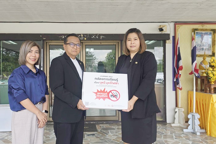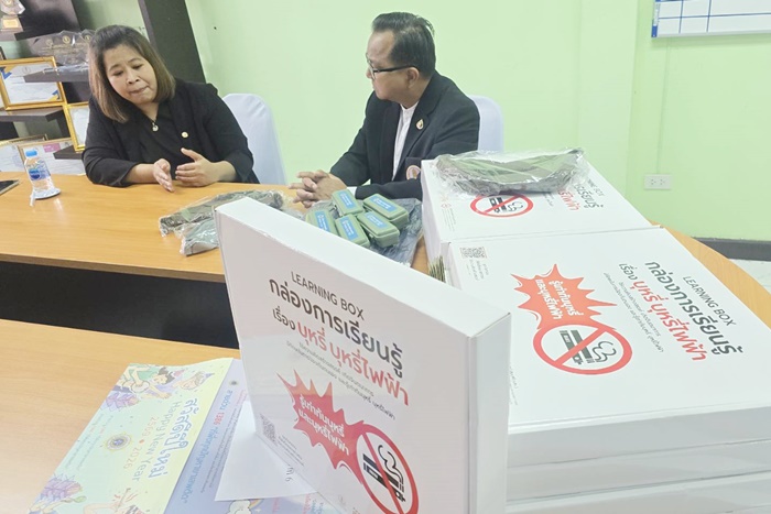 ในการนี้ นายกำจร หัดไทย ได้ให้ความสำคัญกับการเชิดชูบทบาทของภาคีเครือข่ายผู้สนับสนุนหลักที่เป็นฟันเฟืองสำคัญในการขับเคลื่อนสังคมไทย โดยได้ดำเนินการประสานความร่วมมือและขอรับการสนับสนุนสื่อการเรียนรู้จาก มูลนิธิรณรงค์เพื่อการไม่สูบบุหรี่ ภายใต้การสนับสนุนของ สำนักงานกองทุนสนับสนุนการสร้างเสริมสุขภาพ (สสส.) ซึ่งเป็นหน่วยงานหลักระดับประเทศที่อุทิศตนขับเคลื่อนนโยบายป้องกันนักสูบหน้าใหม่และปกป้องเยาวชนจากพิษภัยของบุหรี่ไฟฟ้ามาอย่างต่อเนื่อง ชุดสื่อการเรียนรู้และนิทรรศการป้องกันบุหรี่ไฟฟ้า (Boxset) ดังกล่าว ถือเป็นนวัตกรรมทางการศึกษาที่ผ่านการกลั่นกรองเนื้อหาจากผู้เชี่ยวชาญของมูลนิธิรณรงค์ฯ และ สสส. เพื่อให้เท่าทันต่อสถานการณ์ปัจจุบัน โดย สกร.ระดับอำเภอพรานกระต่าย ได้รับมอบและนำมาต่อยอดผ่านภารกิจข้ามหน่วยงาน ด้วยการส่งมอบสื่อชุดนี้ให้แก่ ผู้แทนจากสำนักงานคณะกรรมการป้องกันและปราบปรามยาเสพติด (ป.ป.ส.ภาค 6) นางสาวเบญจวรรณ รัตนมงคลกุล ตำแหน่งนักสืบสวนสอบสวนชำนาญ เพื่อส่งต่อให้กับเครือข่ายผู้ปฏิบัติงานในสังกัด สำนักงาน ป.ป.ส. ภาค 6 ซึ่งรับผิดชอบพื้นที่ยุทธศาสตร์ 9 จังหวัด ได้แก่ กำแพงเพชร, พิจิตร, นครสวรรค์, อุทัยธานี, พิษณุโลก, สุโขทัย, ตาก, อุตรดิตถ์ และเพชรบูรณ์