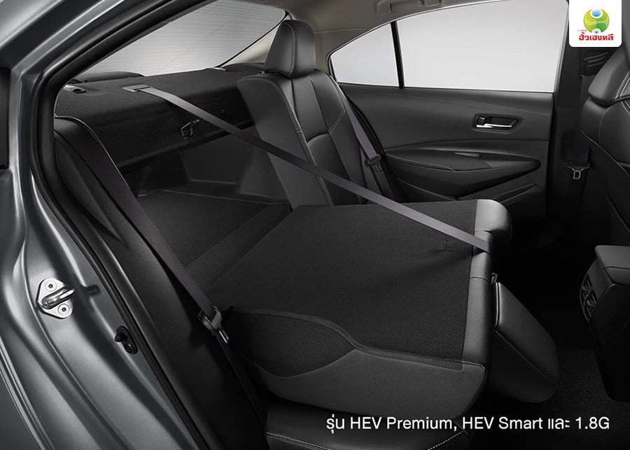 Corolla Altis HEV Smart มีอุปกรณ์เพิ่มขึ้นจากรุ่น 1.8 G ดังนี้ - เครื่องยนต์เบนซิน 1.8 ลิตร Hybrid - เกียร์อัตโนมัติ E-CVT - โหมดการขับขี่ EV / Power / Normal / ECO - ถังน้ำมัน 43 ลิตร - กระจกบังลมหน้าแบบป้องกันเสียงรบกวน Acoustic Glass - พวงมาลัยหุ้มด้วยวัสดุยูรีเทน - เบรกมือไฟฟ้า EPB พร้อม Auto Brake Hold - ระบบควบคุมความเร็วอัตโนมัติแบบแปรผัน Dynamic Radar Cruise Control แบบ All-speed - ระบบความปลอดภัยก่อนการชน PCS (Pre-collision System) - ระบบเตือนเมื่อออกนอกเลน LDA (Lane Departure Alert) - ระบบช่วยควบคุมรถให้อยู่ในเลน LKC (Lane Keeping Control) - ระบบไฟสูงอัตโนมัติ AHB (Auto High Beams) - ระบบควบคุมรถให้อยู่กลางเลน LTA (Lane Tracing Assist) Corolla Altis HEV Premium มีอุปกรณ์เพิ่มขึ้นจากรุ่น HEV Smart ดังนี้ - ล้ออัลลอย 17 นิ้ว - ยาง 225/45 R17 - กระจังหน้าด้านล่าง สีดำเงา - กระจกมองข้างพับเก็บอัตโนมัติ - ระบบเปิด – ปิดไฟหน้าอัตโนมัติ - ระบบหน่วงเวลาปิดไฟหน้า Follow-Me-Home - เบาะนั่งคนขับ ปรับด้วยไฟฟ้า 8 ทิศทาง - เบาะนั่งคนขับ พร้อมปุ่มปรับดันหลังไฟฟ้า - พวงมาลัยหุ้มด้วยวัสดุหนัง - ไฟสร้างบรรยากาศภายในห้องโดยสาร Ambient Light - ลำโพง 6 ตำแหน่ง - ระบบแจ้งเตือนมุมอับสายตาที่กระจกมองข้าง BSM (Blind Spot Monitoring) - ระบบแจ้งเตือนขณะถอยหลังหลัง RCTA (Rear Cross Traffic Alert)