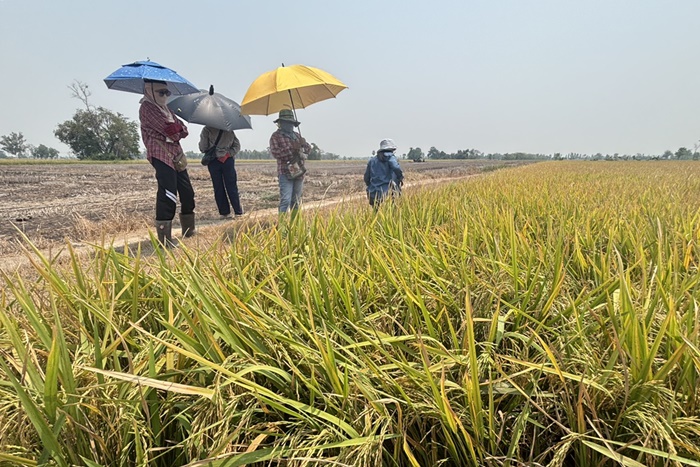 วันที่ 1 เมษายน 2569 นายสันติ ไชยา ผู้อำนวยการศูนย์เมล็ดพันธุ์ข้าวกำแพงเพชร มอบหมายให้ นางสาวเกศิณี แก้วมาลา นักวิชาการเกษตรชำนาญการพิเศษ นายอำนาจ เขียวยิ่ง นักวิชาการเกษตร และนายณัฐวุฒิ อนุสนธิ์ ผู้ช่วยปฏิบัติงานแปลงขยายพันธุ์ เข้าตรวจตัดสินแปลงขยายพันธุ์ กข79 ชั้นพันธุ์จำหน่าย ปี 2569 อย่างเป็นทางการ ณ กลุ่มผู้ผลิตเมล็ดพันธุ์ข้าวบ้านบัวทอง ต.ประชาสุขสันต์ อ.ลานกระบือ จ. กำแพงเพชร