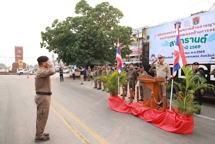 วันที่ 9 เมษายน 2569 เวลา 17.00 น. ที่บริเวณวงเวียนลานโพธิ์ ต.ในเมือง อ.เมือง นายชาธิป รุจนเสรีผู้ว่าราชการจังหวัดกำแพงเพชร เป็นประธานปล่อยแถวระดมกวาดล้างอาชญากรรมและอำนวยความสะดวกด้านจราจรในช่วงเทศกาลสงกรานต์2569 เพื่อป้องกันปราบปรามอาชญากรรมรักษาความสงบเรียบร้อยและดูแลอำนวยความสะดวกด้านการจราจรป้องกันและลดอุบัติเหตุทางถนนในช่วงเทศกาลสงกรานต์ ประจำปี 2569 โดยมี พล.ต.ต.โอภาส คงเมือง ผู้บังคับการตำรวจภูธรกำแพงเพชร, พ.อ.ณัฐกร เรือนติ๊บ รอง ผอ.รมน.จังหวัดกำแพงเพชร, สาธารณสุขจังหวัดฯ, ป้องกันและบรรเทาสาธารณภัยจังหวัดฯ, ปกครองจังหวัด, สมาชิกกองอาสารักษาดินแดนจังหวัดกำแพงเพชร, อาสาสมัครู้ภัยข่าวภาพกำแพงเพชร, เจ้าหน้าที่ และหน่วยงานที่เกี่ยวข้อง เข้าร่วมพิธีปล่อยแถวฯ ในวันและเวลาดังกล่าว