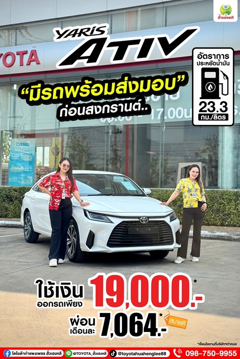 Yaris ATIV ยาริส เอทีฟ • ใช้เงินออกรถเพียง 19,000 บาท • ผ่อนสบายเดือนละ 7,064 บาท Yaris ATIV รถเก๋งสุดคุ้ม ประหยัดน้ำมันถึง 23.3กม./ลิตร “YOUR DAYS, ELEVATEDจังหวะที่ใช่ ในแบบเรา” #โตโยต้า #กำแพงเพชร #ฮั้วเฮง #TOYOTA #Ativ #YarisCross #Fortuner #รถเก๋ง #รถกระบะ #เซลล์โตโยต้า #รถแต่ง #ไฮบริด #รถไฟฟ้า #มีรถพร้อมส่งมอบ #THAICONICDUO #คันที่ใช่โดนใจทุกภาค