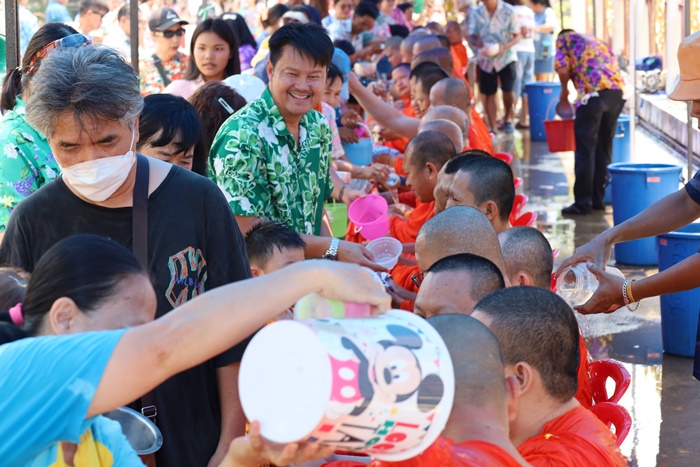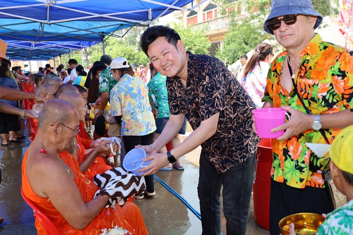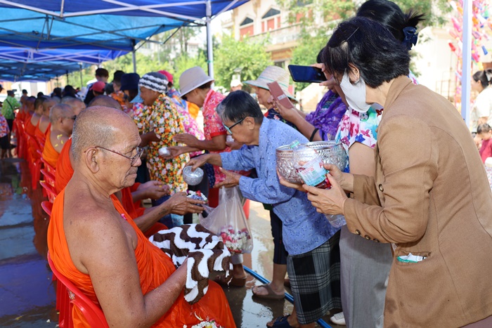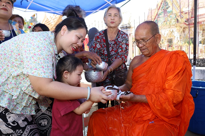 จากนั้นประชาชนร่วมกิจกรรมสรงน้ำพระสงฆ์ เพื่อแสดงความเคารพและขอพรเนื่องในเทศกาลปีใหม่ไทย อีกหนึ่งไฮไลต์สำคัญของงานคือ พิธีอัญเชิญผ้าห่มองค์พระบรมธาตุนครชุม เพื่อถวายเป็นพุทธบูชา และเสริมสิริมงคลแก่ตนเองและครอบครัว เนื่องในวันปีใหม่ไทยและวันครอบครัว บรรยากาศในงานเป็นไปด้วยความอบอุ่นและเปี่ยมด้วยศรัทธา มีประชาชนในเขตเทศบาลเข้าร่วมกิจกรรมเป็นจำนวนมาก สะท้อนถึงความสามัคคีและความหวงแหนในวัฒนธรรมประเพณีอันดีงามของท้องถิ่น
