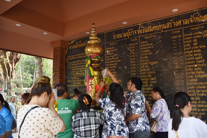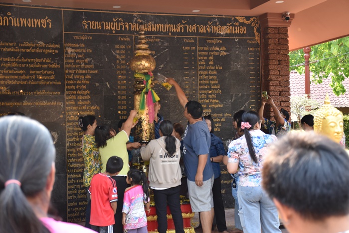 พร้อมกันนี้ได้จัดทำเสาหลักเมืองจำลองใหม่ โดยทำจากไม้สักทองมีขนาดความสูงจากพื้นเสา 2.29 เมตร ความกว้างของฐานขนาด 64 เซนติเมตร โดยได้อัญเชิญเสาหลักเมืองจำลองที่ได้ผ่านการทำพิธีจากกรม ศิลปากรมาวางไว้เพื่อให้ประชาชนได้สักการบูชา ณ ศาลารายชื่อผู้จัดสร้างศาลหลักเมือง เมื่อวันที่ 26 มีนาคม 2551 การสังเวยเจ้าพ่อหลักเมืองกำแพงเพชร ในวันที่ 15 เมษายน ของทุกปี เรียกว่า “วันพญาวัน”ซึ่งประชาชนจำนวนมากจะมาชุมนุมพร้อมกันที่ศาลหลักเมืองกำแพงเพชร มักเรียกประชาชนที่มาร่วมกันว่า “ลูกช้าง”ทุกคนที่มาชุมนุมกันจะบนบานศาลกล่าวขอพรต่างๆ และพวกที่ยังไม่ได้แก้บนจะแก้บนให้เสร็จสิ้นในวันนี้