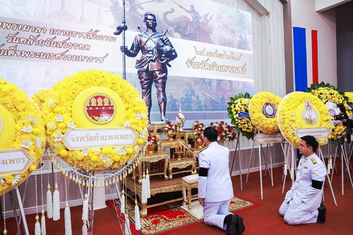 วันที่ 25 เมษายน 2569 นายสันติ ไชยา ผู้อำนวยการศูนย์เมล็ดพันธุ์ข้าวกำแพงเพชร มอบหมายให้ นางสาวศตพร วิวัฒนเศรษฐ์ นักวิชาการเงินและบัญชีปฏิบัติการ นางสาวรัตนา พันธ์บุญ เจ้าพนักงานธุรการปฏิบัติงาน พร้อมด้วยเจ้าหน้าที่ศูนย์เมล็ดพันธุ์ข้าวกำแพงเพชร ร่วมงานรัฐพิธีเนื่องใน '' วันคล้ายวันสวรรคตสมเด็จพระนเรศวรมหาราช '' ประจำปี 2569 เพื่อเป็นการน้อมรำลึกในพระมหากรุณาธิคุณ ณ หอประชุมใหญ่ศูนย์ราชการจังหวัดกำแพงเพชร