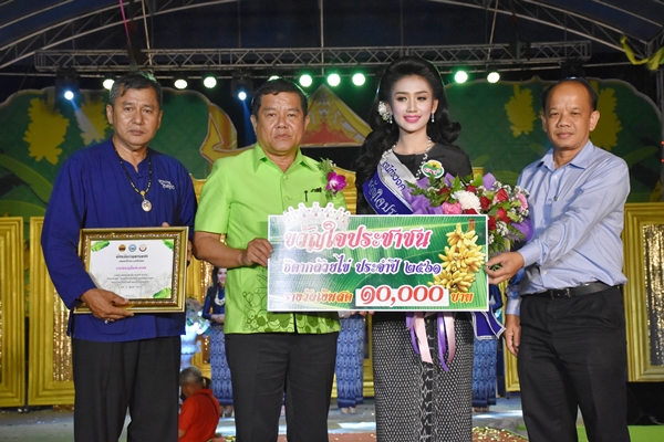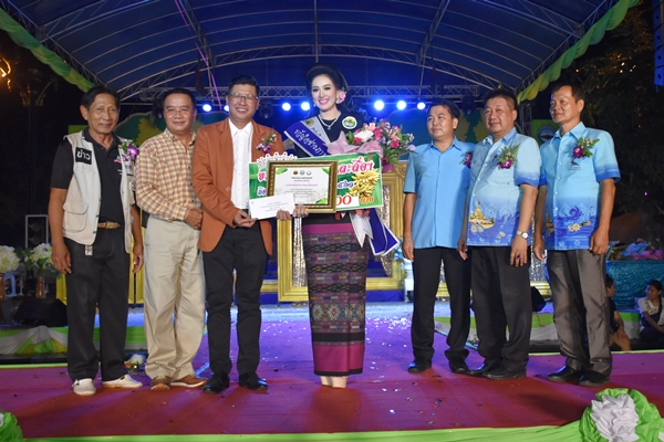 รางวัลรองชนะเลิศอันดับที่ 3 สาวงามเบอร์ 18 นางสาวนริศรา กาหา อายุ 18 ปี อำเภอลานกระบือ ส่งเข้าประกวด มีนายมนต์ชัย รุ่งชาญชัย บริษัทห้างหุ้นส่วนจำกัด โรงสีสิงโตทองไรท์ มอบเงินรางวัล และช่อดอกไม้