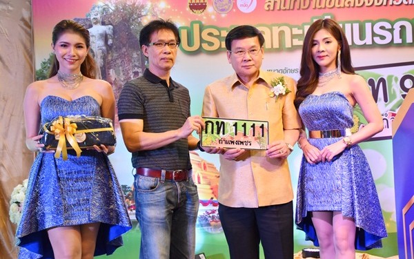 เมื่อวันเสาร์ที่ 1 ธันวาคม 2561 ณ ห้องเยาวมาลย์ โรงแรมชากังราว ริเวอร์วิว จังหวัดกำแพงเพชร สำนักงานขนส่งหวัดกำแพงเพชร จัดการประมูลหมายเลขทะเบียนรถสวยของจังหวัดกำแพงเพชร โดยมีนายพีระพล ถาวรสุภเจริญ อธิบดีกรมการขนส่งทางบก เป็นประธานในพิธีเปิดการประมูลหมายเลขทะเบียนรถสวย มีนายเชาวลิตร แสงอุทัย ผู้ว่าราชการจังหวัดกำแพงเพชร กล่าวต้อนรับผู้ที่เข้ามาร่วมการประมูลและผู้มีเกียรติที่มาร่วมงานในครั้งนี้ มีนายสุรชัย ทับยา ขนส่งจังหวัดกำแพงเพชร กล่าวรายงาน