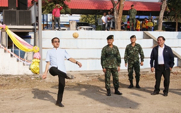 ซึ่งบรรยากาศในภายกิจกรรม สีสันของการเปิดกีฬาอยู่ที่ให้ประธาน นายองอาจ สังคหัตถากร นายอำเภอเมืองกำแพงเพชร และแขกผู้มีเกียรติ ร่วมเตะตะกร้อลงสุ่ม โดยนำสุ่มไก่แขวนอยู่บนรถกระเช้า จากนั้นล้อมวงเตะตะกร้อให้ลงในสุ่มไก่ งานนี้แต่ละท่านกว่าจะเตะตะกร้อลงสุ่มไก่ได้เล่นเอาเหงื่อไหลกันไปตามๆกัน