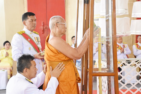 หลังประธานในพิธีจุดธูปเทียนบูชาพระรัตนตรัย เจ้าหน้าที่อาราธนาศีล ประธานสงฆ์ให้ศีล ประธานในพิธีได้เชิญใบพลู 7 ใบ ถวายประธานสงฆ์เจิมใบพลู ประธานสงฆ์ ถวายใบพลู 7 ใบ แด่พระสงฆ์เถราจารย์ จากนั้นเวลา 10.00 น.พระสงฆ์เถราจารย์ดับเทียนชัย พระสงฆ์ 30 รูป เจริญพระพุทธมนต์คาถาดับเทียนชัย เจ้าหน้าที่ประโคมฆ้องชัย วงดนตรีบรรเลงเพลงมหาฤกษ์ ประธานสงฆ์ พรหมน้ำพระพุทธมนต์ที่ขันน้ำสาคร และมอบให้ประธานในพิธี ประธานในพิธี กล่าวคาถาตักน้ำ เสร็จแล้วเจ้าหน้าที่ได้เชิญที่ตักน้ำส่งให้ประธานพิธี ทำการตักน้ำอภิเษกจากขันน้ำสาครใส่คนโท ปริมาณน้ำตามที่กำหนด (ปริมาณถึงคอคนโท) แล้วปิดฝาคนโทให้สนิท