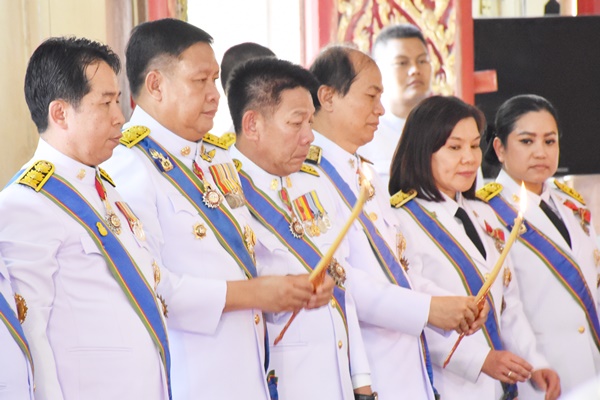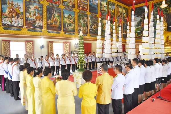 หลังจากนั้นได้มีเจ้าหน้าที่เทียบภัตตาหาร (ปิ่นโต) และจตุปัจจัยไทยธรรม แด่พระสงฆ์ ก่อนเชิญประธานในพิธีและข้าราชการผู้ใหญ่ ถวายภัตตาหารและจตุปัจจัยไทยธรรมแด่พระสงฆ์ ประธานสงฆ์ อนุโมทนา ร่วมกันกรวดน้ำ รับพร