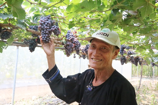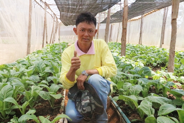 ภายหลังมีเจ้าหน้าที่ โครงการพัฒนาพื้นที่สูงแบบโครงการหลวงคลองลาน มาแนะนำให้ปลูกพืชราคาสูง ตนจึงตัดสินใจ นำพื้นที่ ที่ได้รับการจัดสรรจำนวน 1 ไร่กว่า ปรับเปลี่ยนจากการปลูกข้าวโพด มาทำโรงเรือน ปลูกพืชราคาสูงแทน ซึ่งตอนนี้ได้แบ่งพื้นที่สำหรับปลูกองุ่นพันธ์ 4 โรงเรือน ปลูกเมล่อนพันธ์ 2 โรงเรือน ส่วนที่เหลือปลูกผักพื้นบ้านและหน่อไม้ หมุนเวียนเก็บเกี่ยวผลผลิตส่งจำหน่าย โดยมีเจ้าหน้าที่ ค่อยดูแลให้คำแนะนำกระบวนการผลิตพืชปลอดภัยอย่างใกล้ชิด ส่วนรายได้จะมีเข้าตลอดทั้งปี เพราะพืชในแปลงจะแบ่งเวลาเก็บเกี่ยวผลผลิต เพื่อให้มีรายได้ตลอดทั้งปี โดยตนแบ่งเป็นรายได้ระยะสั้น สามารถขายได้ทุกวัน คือการปลูกผักจะจำหน่ายเป็นในชุมชน ส่วนรายได้ระยะยาว จะเป็นผลไม้ เช่น เมล่อน กับองุ่นไร้เมล็ด ที่จะได้ตัดจำหน่ายได้ 3-4 เดือนครั้ง ปัจจุบันจะมีลูกค้าประจำ มาสั่งจองถึงสวนเพราะมีรสชาติหวานมาก ทำให้เมล่อนที่นี้ มีเจ้าของก่อนการเก็บเกี่ยวแทบทุกลูก ส่วนองุ่นตนได้รับคำแนะนำให้ปลูก พันธุ์บิวตี้ ซีดเลส ซึ่งก็ให้ผลผลิตที่ดีมาก รสชาติหวานอร่อย และมีลูกค้าขาประจำ สั่งจองไว้เช่นกัน ปัจจุบันมีรายได้เพิ่มมากขึ้นเป็น 10 เท่าตัว