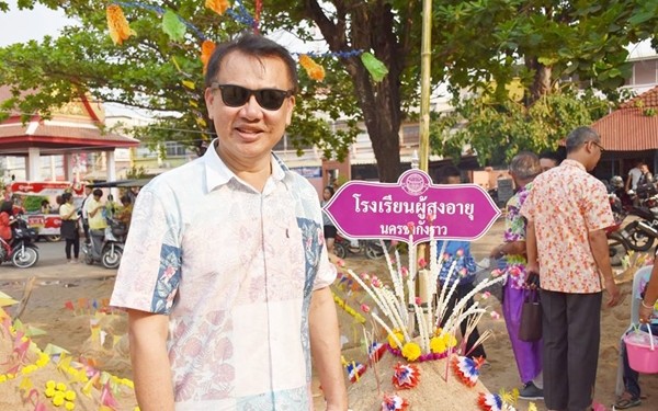 ส่วนผู้สูงอายุก็มาร่วมงานบุญนี้ด้วยเช่นเดียวกัน และได้รับการดูแลจากบุตรหลาน ประเพณีนี้ก่อให้เกิดความสมัครสมานสามัคคีในหมู่ชาวบ้านได้เป็นอย่างดีประเพณีก่อพระเจดีย์ทรายในวันสงกรานต์ นี้สืบทอดตั้งแต่บรรพบุรุษจนถึงปัจจุบัน ด้วยความเชื่อว่าการเข้าไปในวัดแต่ละครั้งจะมีดินทรายติดกลับออกมาด้วยทุกครั้ง ดังนั้นเมื่อถึงวันสงกรานต์ ต้องขนทรายกลับคืนเข้าวัดเป็นการชดเชย ทรายที่ก่อพระเจดีย์จะได้นำไปใช้ประโยชน์ในการก่อสร้างสาธารณประโยชน์ต่างๆต่อไป