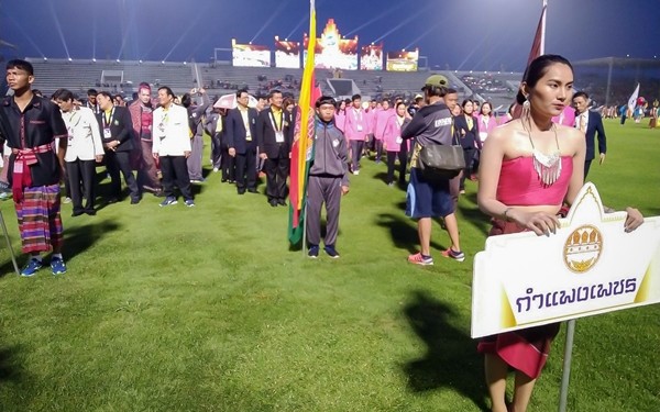 จากนั้นเป็นขบวนพาเหรดนำเจ้าหน้าที่และนักกีฬาของแต่ละจังหวัดเดินเข้าสู่สนามตามลำดับอักษร ก-ฮ ด้วยชุดการแต่งกายกีฬาหลากสีสัน มีฉากหลังเป็นจอ LED ขึ้นตัวหนังสือคำขวัญประจำจังหวัดประกอบ ปิดท้ายด้วยทัพนักกีฬาจากจังหวัดเจ้าภาพ และ พิธีเชิญธงชาติไทยขึ้นสู่ยอดเสา