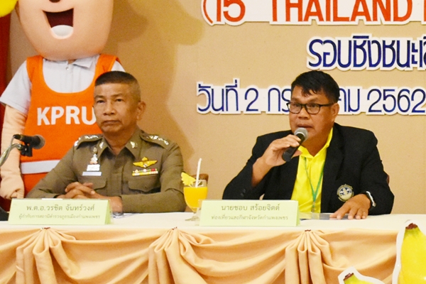 เมื่อวันที่ 2 กรกฎาคม 2562 เวลา 15.00 น ที่ห้องลิไท โรงแรมเพชร อำเภอเมืองจังหวัดกำแพงเพชร นายเชาวลิตร แสงอุทัย ผู้ว่าราชการจังหวัดกำแพงเพชร เป็นประธาน ในงานแถลงข่าวจัดการแข่งขันฟุตบอลเยาวชนและประชาชนครั้งที่ 15 ประจำปี 2562 รอบชิงชนะเลิศแห่งประเทศไทยรุ่นอายุ 18 ปี พร้อมด้วยนายสุนทร รัตนากร นายกองค์การบริหารส่วนจังหวัดกำแพงเพชร พันตำรวจเอกวรชิต จันทร์วงศ ผู้กํากับการสถานีตํารวจภูธรเมืองกำแพงเพชร รองศาสดาจารย์สุวิทย์ วงศ์บุญมาก อธิการบดีมหาวิทยาลัยราชภัฏกําแพงเพชร พร้อมด้วยสื่อมวลชนและท่านผู้มีเกียรติทุกท่าน เข้าร่วมแถลงข่าวในวันนี้