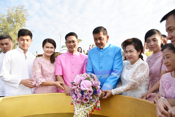 พร้อมด้วยนางนวลจันทร์ แสงอุทัย นายกเหล่ากาชาดจังหวัดกำแพงเพชร ,นายเทวัญ หุตะเสวี , นางสาวสุพัตรา คล้ายทิม รองผู้ว่าราชการจังหวัดกำแพงเพชร ,นายอนันต์ คงชื่น ผู้พิพากษาหัวหน้าศาลจังหวัดกำแพงเพชร , พลตำรวจตรีระวีพรรษ อมรมุณีพงศ์ ผู้บังคับการตำรวจภูธรจังหวัดกำแพงเพชร ,นายองอาจ สังคหัตถากร นายอำเภอเมืองกำแพงเพชร และผู้บริหารระดับสูงของจังหวัด ผู้แทนจากภาครัฐ ภาคเอกชน และหน่วยงานต่าง ๆ ตลอดจนประชาชนชาวกำแพงเพชรกว่า 3,000 คน ที่นำของอุปโภคบริโภค โดยเฉพาะข้าวสารอาหารแห้งและเครื่องดื่ม เดินทางมาร่วมทำบุญตักบาตรกันอย่างคึกคัก