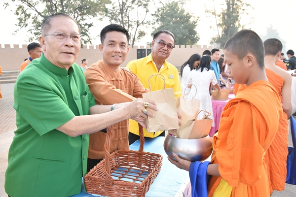 โดยมีพระธรรมภาณพิลาศ เจ้าคณะจังหวัดกำแพงเพชร กล่าวสัมโมทนียกถาแก่ข้าราชการ และประชาชนที่มาร่วมทำบุญ จากนั้นผู้ว่าราชการจังหวัดกำแพงเพชร ได้กล่าวคำอวยพรเนื่องในโอกาสวันขึ้นปีใหม่แก่ประชาชนที่มาร่วมพิธีฯพร้อมทำบุญตักบาตร ข้าวสารอาหารแห้งและเครื่องดื่ม แก่พระภิกษุสงฆ์ จำนวน 256 รูป จากนั้น ได้พากันทำทาน โดยการปล่อยปลา และให้อาหารปลาในแม่น้ำปิง จำนวน 200,000 ตัวลงสู่แม่น้ำปิง ก่อนแยกย้ายกันไปท่องเที่ยวในวันหยุดปีใหม่