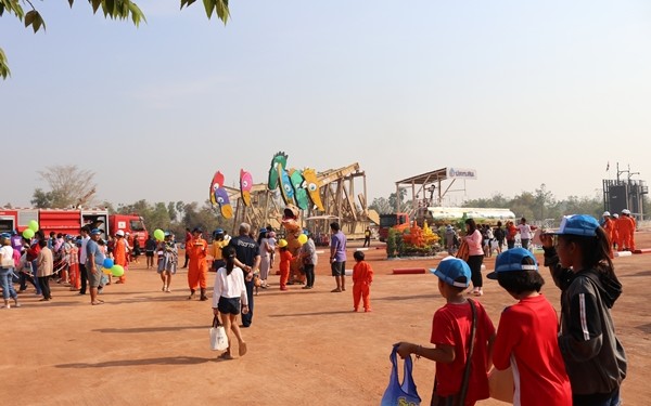 โดยเด็ก ๆ มารอลงทะเบียนตั้งแต่เวลา 6.30 น. เพื่อร่วมชมการแสดงจากน้อง ๆ โรงเรียนเทศบาลตำบลลานกระบือ ศูนย์พัฒนาเด็กเล็กเทศบาลตำบลลานกระบือ และโรงเรียนอนุบาลลานกระบือ พร้อมทั้งร่วมในพิธีเปิดซึ่งได้รับเกียรติจาก นายสุวิทย์ สันตติวงศ์ไชย นายอำเภอลานกระบือ เป็นประธานในพิธี พร้อมด้วย นายธำรงค์ จันคง นายกเทศมนตรีตำบลลานกระบือ นายวีระวัฒน์ อ่วมสร้อย ผู้จัดการอาวุโส ฝ่ายปฏิบัติการผลิต โครงการเอส 1 ปตท.สผ. ตลอดจนหัวหน้าส่วนราชการและผู้นำท้องที่-ท้องถิ่นอำเภอลานกระบือ เข้าร่วมในพิธีเปิด