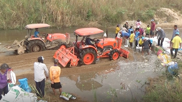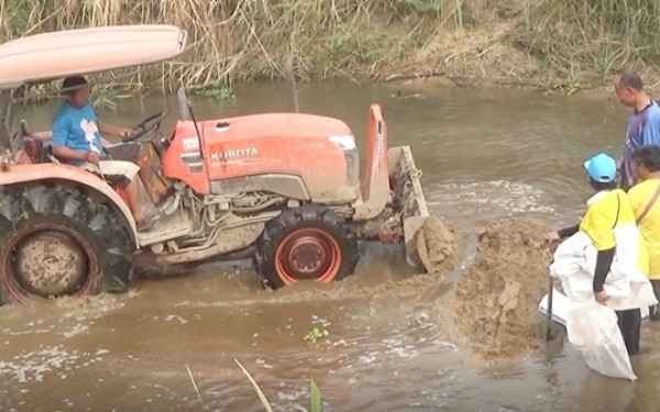 ที่คลองสวนหมาก ม.11 ตำท่าขุนราม อ.เมือง จ.กำแพงเพชร กำนัน ผู้ใหญ่บ้าน สมาชิก อบต.ร่วมกับชาวบ้านในเขตพื้นที่ตำบลท่าขุนราม ช่วยกันสร้างฝายชะลอน้ำขึ้น เพื่อช่วยกักเก็บยกระดับน้ำในฤดูแล้งนี้ ซึ่งชาวบ้านให้ความร่วมมือเป็นอย่างดี โดยนำรถไถมาไถทรายก้นคลองเพื่อกรอกใส่ทรายใส่ถุงปุ๋ย นำไปวางซ้อนกันเป็นฝายชะลอยกระดับน้ำให้สูงขึ้น เพื่อให้ประชาชนและเกษตรกรได้มีน้ำกักตุนไว้ใช้สำรองในช่วงฤดูแล้งที่กำลังมาถึงนี้