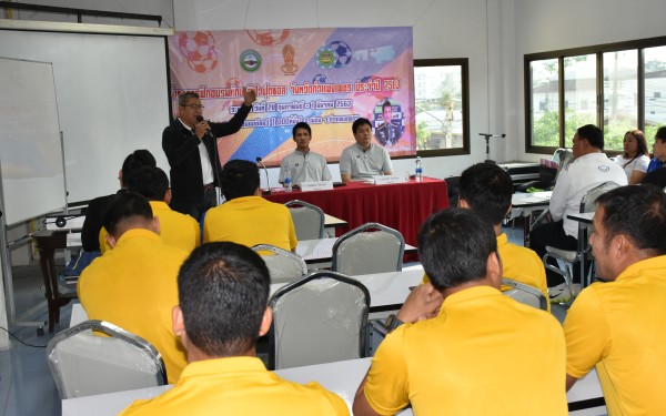 ในการอบรมครั้งนี้ ได้เชิญวิทยาที่มีประสบการณ์ด้านกีฬาฟุตบอล มาให้ความรู้แก่ผู้เข้ารับการอบรม นายพัทยา เปี่ยมคุ้ม หรือที่รู้จักกันว่า โคชเอ๋ อดีตนักกีฬาสโมสรฟุตบอลการท่าเรือไทย และเป็นอดีตผู้ฝึกสอนฟุตซอลทีมชาติไทย หัวหน้าฝึกสอนฟุตซอลชายทีมชาติไทย ได้รับเหรียญทอง ฟุตซอลในซีเกมส์ 2007, ผู้ช่วยผู้ฝึกสอนฟุตซอลชายทีมชาตไทย ได้รับเหรียญทองฟุตซอลในซีเกมส์ 2011 ที่ประเทศอินโดนีเซีย, หัวหน้าผู้ฝึกสอนฟุตซอลหญิงทีมชาติไทย ได้รับเหรียญทอง ฟุตซอลในซีเกมส์ 2013 ที่ประเทศพม่า และเป็นผู้ฝึกสอนฟุตซอลทีมชาติเวียดนาม สามารถพาทีมเข้าสู่รอบชิงชนะเลิศ ในการแข่งขันระดับนานาชาติได้ เป็นครั้งแรกในปี 2008 และปัจจุบันเป็นหัวหน้าผู้ฝึกสอนสโมสรฟุตซอลลำปางยูไนเต็ด
