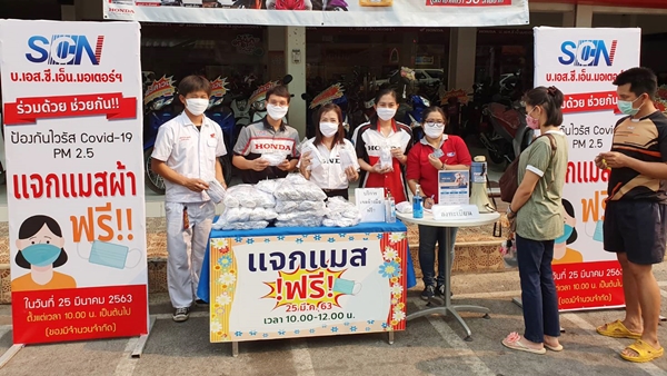 เมื่อวันที่ 25 มีนาคม 2563 ที่บริษัท เอส.ซี.เอ็น.มอเตอร์เซลส์แอนด์เซอร์วิส จำกัด ถนนเจริญสุข ตำบลในเมือง อำเภอเมือง จังหวัดกำแพงเพชรอ โดยคุณสมศักดิ์-คุณวิจิตรา ขำสกุล ขอเป็นส่วนหนึ่งในการช่วยเหลือ พี่น้องใน จังหวัดกำแพงเพชร เพื่อป้องกัน ไวรัส Covid-19 และ PM2.5 โดยวันที่ 25 มีนาคม 2563 เวลา 10.00 เป็นต้นไปทางบริษัทฯ ได้จัดหา และ แจกจ่าย แมสผ้า ให้ฟรี !! 3,000 ชิ้นและได้ ทำการ Big Cleaning Day ภายในบริษัท เพื่อให้มั่นใจว่าเราใส่ใจสุขภาพทั้งภายใน และภายนอก