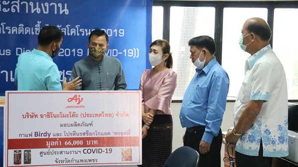 จาก นายนัฎทพนธ์ พานิชดี ผู้จัดการโรงงาน บริษัทอายิโนะโมะโต๊ะ (ประเทศไทย) จำกัด โรงงานกำแพงเพชร พร้อมด้วยเจ้าหน้าที่ฯ สนับสนุนผลิตภัณฑ์ของบริษัทฯ มูลค่า 66,000บาท โดยมี