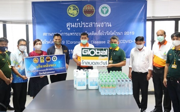 ๔.บริษัท สยามโกลบอลเฮ้าส์ จำกัด สาขาจังหวัดกำแพงเพชร มอบ แอลกอฮอล์เจลทำความสะอาด จำนวน ๔,๐๐๐ ML ๖ แกลอน น้ำดื่มจำนวน ๘๐ โหล