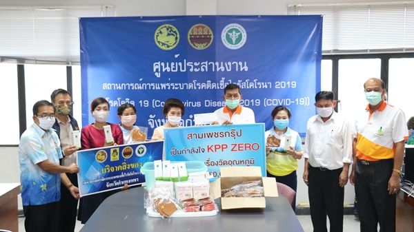 ๒.ห้างหุ้นส่วนจำกัด สามเพชร กรุ๊ป มอบเครื่องวัดอุณหภูมิจำนวน ๒๖ เครื่อง,หน้ากากอนามัย จำนวน ๒๖๗ ชิ้น เงินสดจำนวน ๕๐,๐๐๐ บาท