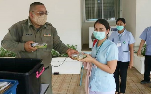 วันที่ 23 เมษายน 2563 ที่โรงพยาบาลพรานกระต่าย อำเภอพรานกระต่าย จังหวัดกำแพงเพชร ดาบตำรวจอุไลย์ กลิ่นจุ่น เจ้าหน้าที่ตำรวจสถานีตำรวจภูธรพรานกระต่าย ส่งมอบอาหารให้แก่โรงพยาบาลพรานกระต่าย โดยมี แพทย์หญิงพจนีย์ วัชรกานนท์ ผู้อำนวยการโรงพยาบาลพรานกระต่าย พร้อมด้วย เจ้าหน้าที่
